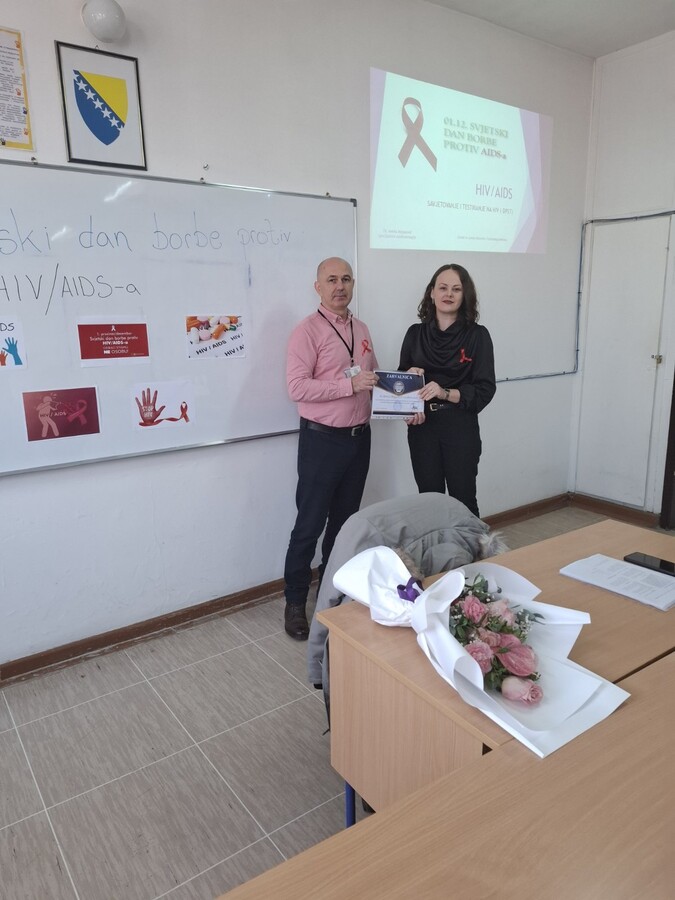 Dana 01.12.2025.godine u prostorijama JU Mješovita srednja škola Tuzla održano je edukativno predavanje u sklopu obilježavanja Svjetskog dana borbe protiv HIV/ AIDS-a.